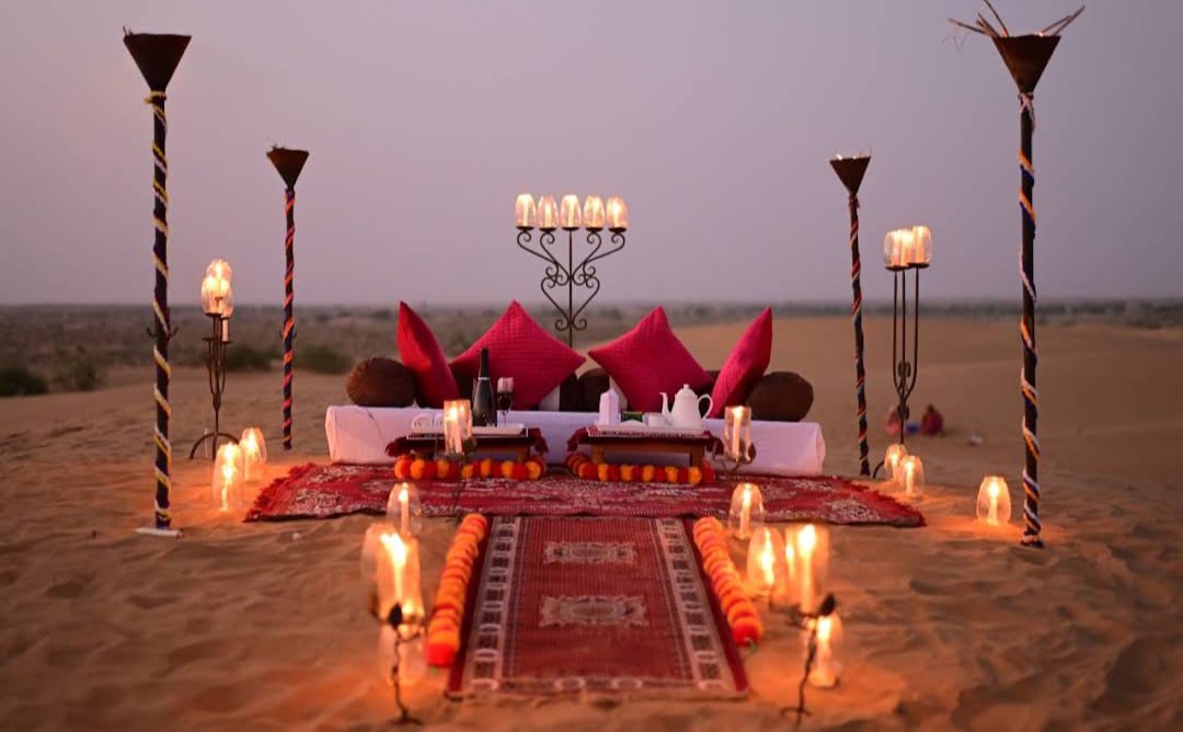 Guests can relax with a magical dinner on the dunes, soaking in the stunning sunset and starry sky. Comprehensive guiding services and local transportation make it easy to explore the area’s attractions while enhancing the experience. With its lavish accommodations, outstanding facilities, and a wide array of adventure activities, the Desert Camp in Jaisalmer ensures a memorable and enriching experience. Reserve your stay now to create unforgettable memories in the heart of the desert.